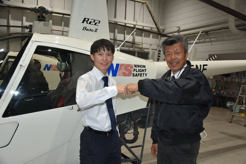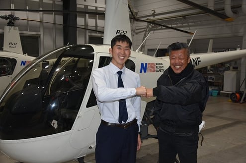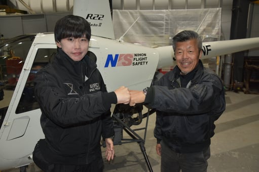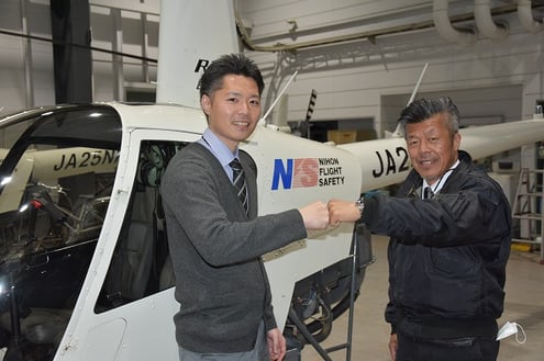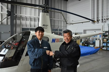②正直訓練は厳しく、求めるレベルも高いため何度も心が折れそうになりました。しかし、知識の構築、一日一日のフライトに魂を込め確実に技術の習得、何よりヘリコプターを愛する気持ち、これさえあれば確かな自信となり誰もがパイロットになれると思います。